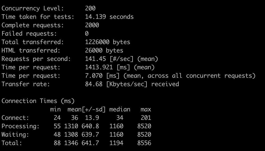 很明显,性能有了很大的提高。不仅速度快了很多,吞吐率也是直接上升了几倍。当然,这只是非常简单的一个测试,不过总体看来,确实对单机的性能提升有很大的帮助。最最主要的是,同样的并发情况下,cpu 资源也比未开启的状态下低了70%。