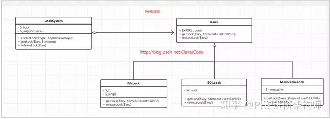 锁的操作一般只有两步,一 获取锁(getlock);二是释放锁(releaselock)。但现实锁的方式有很多种,可以是文件方式实现;sql实现;memcache实现;根据这种场景我们考虑使用策略模式。