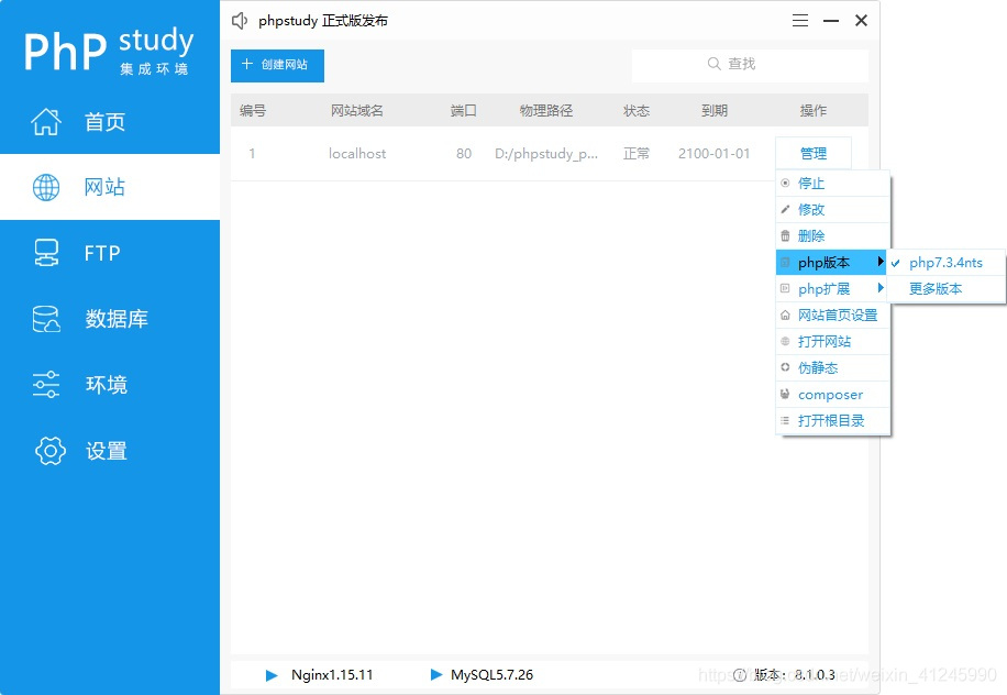 解压后运行exe进行安装,我的安装目录是:d:\phpstudy_pro