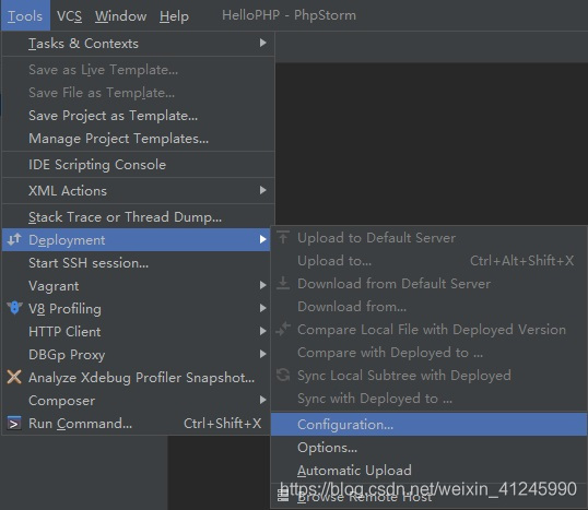 我们点击“工具/部署/配置”菜单进行本地服务配置