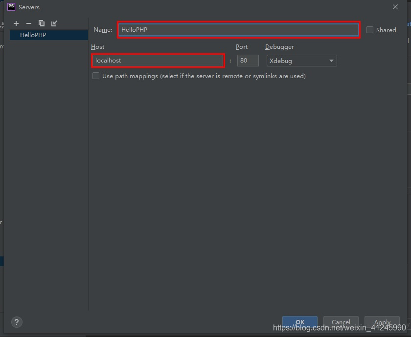 ied key输入刚刚php.ini文件中xdebug.idekey的值,host、port是file->settings->languages&frameworks->php->servers中设定的host、port值,具体配置如下图:
