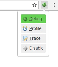 2)配合chrome的插件我们使用xdebug,安装完成在浏览器地址栏的右侧能够看到一只小爬虫,点击后如下图所示: