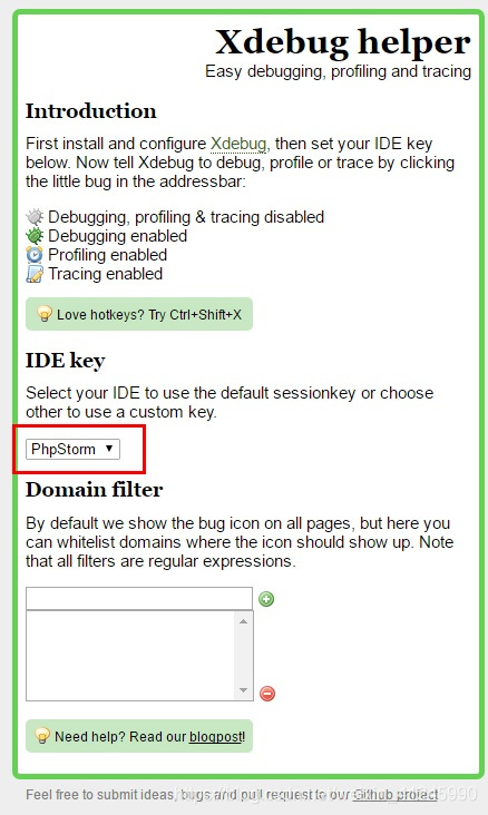 我们可以在xdebug helper中配置它,选择phpstorm并且在右边的框中填入phpstorm-xdebug。