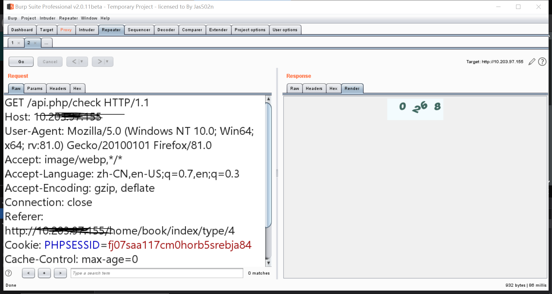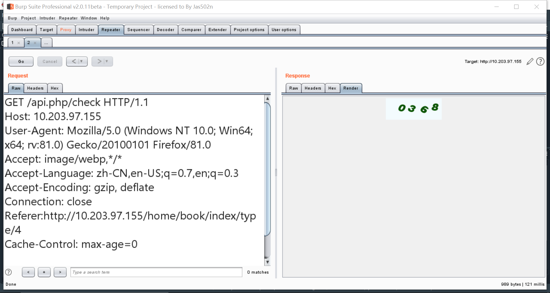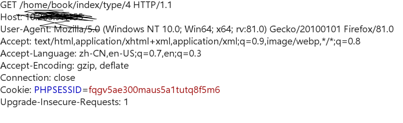 headers = {'User-Agent': 'Mozilla/5.0 (Windows NT 10.0; Win64; x64; rv:80.0) Gecko/20100101 Firefox/80.0','Accept': 'image/webp,*/*','Accept-Language': 'zh-CN,en-US;q=0.7,en;q=0.3','Accept-Encoding': 'gzip, deflate','Connection': 'close','Referer': 'http://10.203.97.155/home/book/index/type/4','Cookie': coo1,'Cache-Control': 'max-age=0'}//设置相应头,这个可以按照burpsuite里面照抄,最好他有什么你有什么,因为我们有了cookie所以可以正常访问验证码