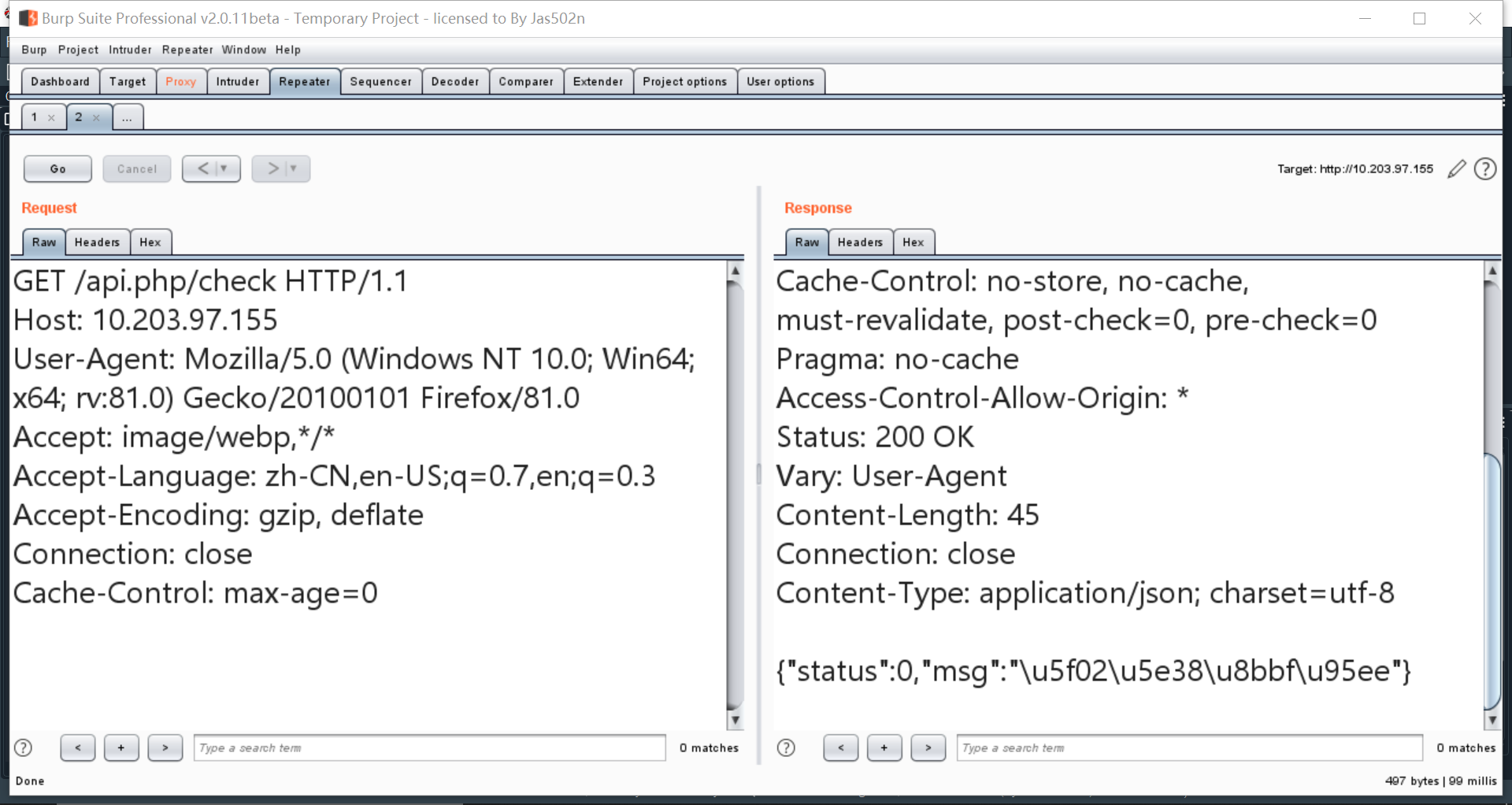 r=requests.get('http://10.203.97.155/api.php/check',headers=headers)