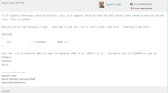 warning #10349-D: creating output section ".rodata" without a SECTIONS specification. For additional information on this section, please see the 'C6000 EABI Migration' guide at http://processors.wiki.ti.com/index.php/C6000_EABI:C6000_EABI_Migration#C6x_EABI_Sections