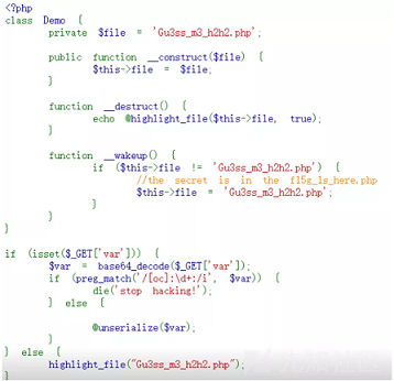 $test_unser = unserialize($pp); // 反序列化同时触发_destruct函数