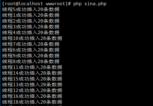 echo "线程{$this->name}成功插入{$ret}条数据\n";