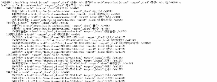 这样可以抓取京东商品分类的信息了。可以加上数据库,将数据保存在数据库中,这样可以更利于数据的保存和操作。虽然这里只是抓取京东商品的分类,如果延伸一下的话还可以抓取商品价格,好评差评等信息。这里就不一一细说了,具体问题具体解决,完全看需求。如果有需要的话还可以做成万能的,输入标签的xpath,然后得到具体的值;这纯属YY,有兴趣的可以网上找找资料,实现的方式应该也不少。