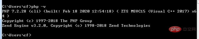 至此,PHP安装完成,可打开cmd查看对应的版本,如图: