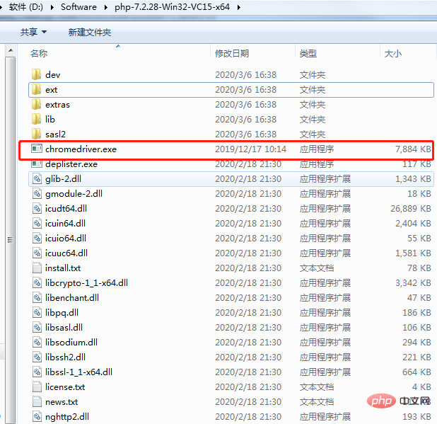 注意:下载完成的驱动文件要放在php的根目录下