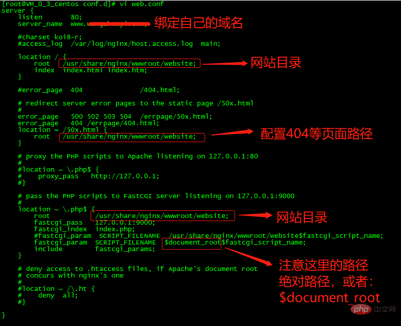 注:这里说明一点,每个版本的nginx配置文件多少有些不一样,但是大体上是相同的,root指的就是默认访问的路径,fastcgi_aram指的就是PHP要解析的路径,这两个路径需要一致才可以访问。