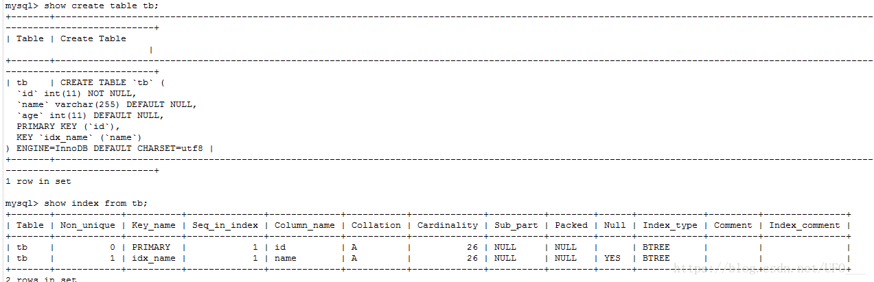 如果需要更多字段的数据而不单单是age的话,可以进行两次查询,第一次通过name来获取id(这一步是索引扫描),第二步拿获取来的数据在进行id匹配查询(这一步效率很高,ref或者const)。