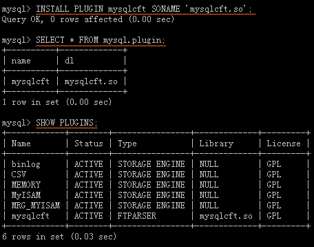 INSTALL PLUGIN mysqlcft SONAME 'mysqlcft.so';
