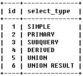 f.从UNION表获取结果的SELECT被标记为:UNION RESULT