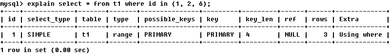 TIPS:查询中若使用了覆盖索引,则该索引仅出现在key列表中