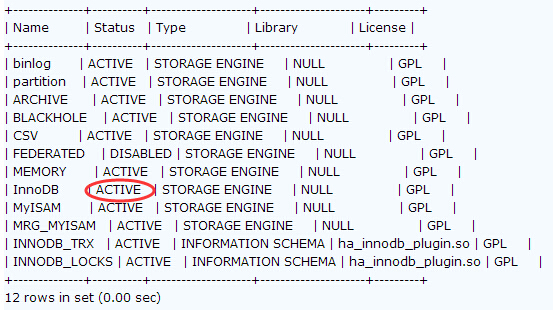 系统默认没有任何环境,安装较早版本MySQL时如果没有配置innodb引擎,则即时开启my.cnf中innodb配置选项也无法启动。 登陆MySQL后可以通过如下命令查看MySQL已经安装了innodb引擎 mysql> show plugins;
