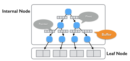 由于TokuDB内部有不少性能探(ji)针(shu),他们发现步骤3)是个不小的性能消耗点,因为每次都要把message buffer做下排序构造出OMT,于是在7.5.0版本,把OMT的FIFO-offset(已排序)也持久化到磁盘,这样排序的损耗就没了。 c) 顺序写加速 当写发生的时候,会根据当前的key在pivots里查找(二分)当前写要落入哪个mesage buffer,如果写是顺序(或局部顺序,数据走向为最右边路径)的,就可以避免由"查找"带来的额外开销。