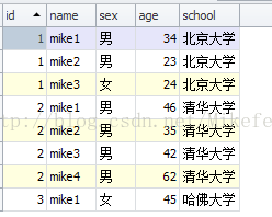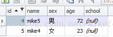 select a.id,a.name,a.sex,a.age,b.school from (select * from mike1.test001) a left outer join (select id,school from mike1.test003 ) b on a.id=b.id where b.id is null