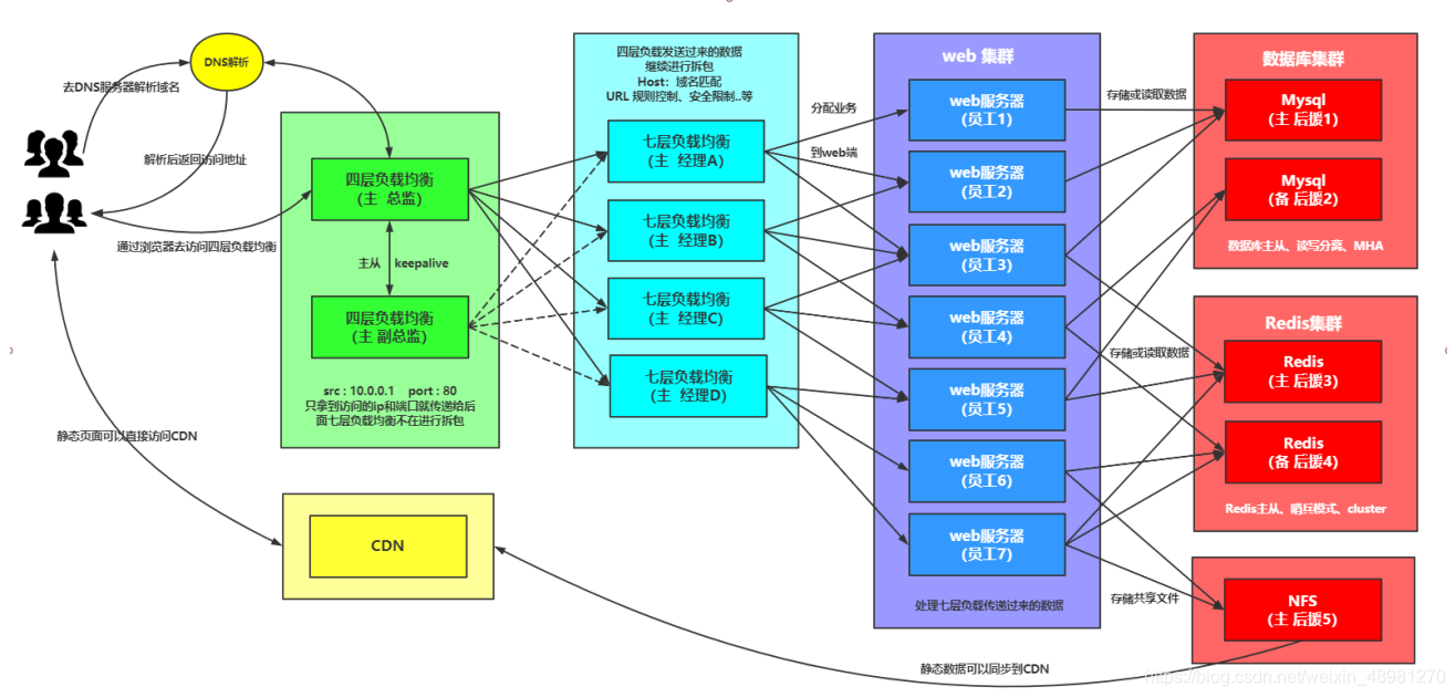 1.四层+七层来做负载均衡,四层可以保证七层的负载均衡的高可用性;
