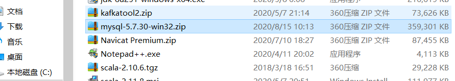 我们在官网下载一个mysql.zip压缩包。如下图: