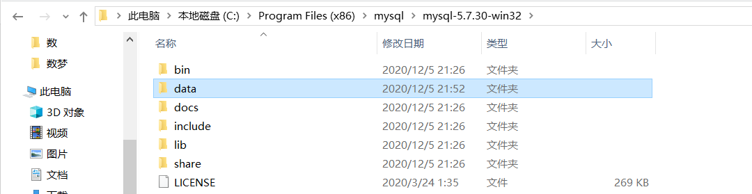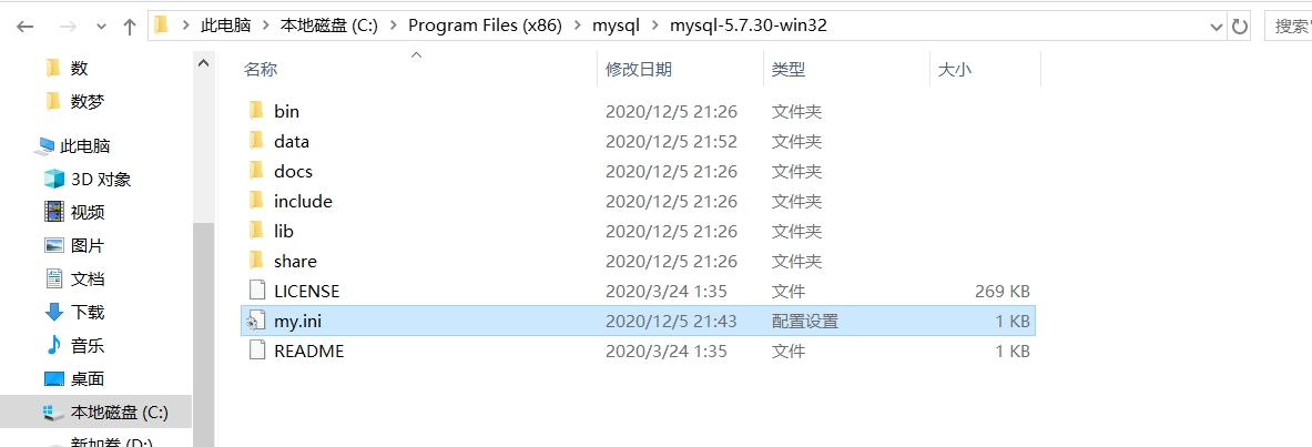datadir=C:\Program Files (x86)\mysql\mysql-5.7.30-win32\data