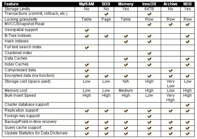 各种存储引擎的特性