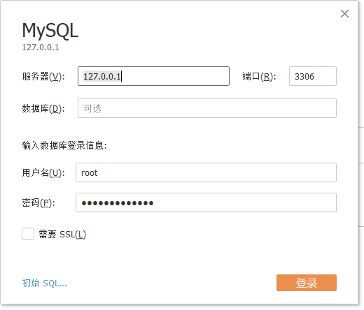 在弹出的界面中,输入服务器地址:127.0.0.1(本地服务器默认),端口号3306,还有自己的用户名和密码,点击登录即可。