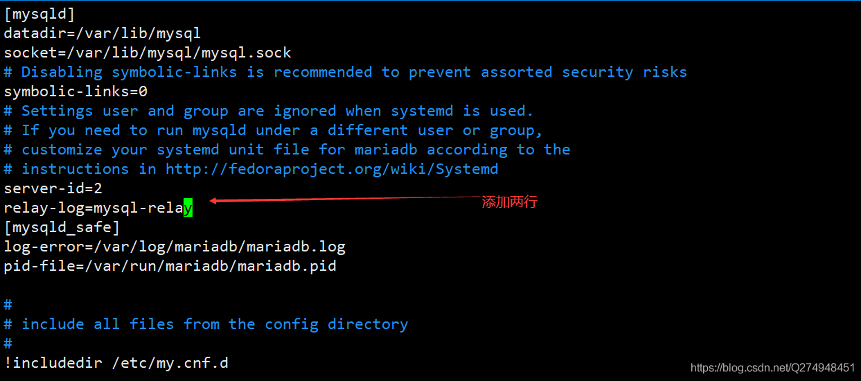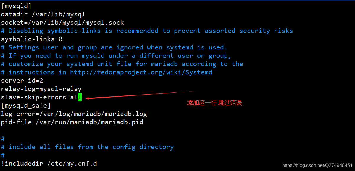 [root@localhost ~]# systemctl restart mariadb [root@localhost ~]# mysql welcome to the mariadb monitor. commands end with ; or \g. your mariadb connection id is 2 server version: 5.5.65-mariadb mariadb server copyright (c) 2000, 2018, oracle, mariadb corporation ab and others. type 'help;' or '\h' for help. type '\c' to clear the current input statement. mariadb [(none)]> change master to -> master_host='192.168.27.136', -> master_user='tom', -> master_password='123', -> master_log_file='mysql-bin.000001', -> master_log_pos=175170; query ok, 0 rows affected (0.01 sec) mariadb [(none)]> start slave; query ok, 0 rows affected (0.00 sec) mariadb [(none)]> show slave status \g; *************************** 1. row *************************** slave_io_state: waiting for master to send event master_host: 192.168.27.136 master_user: tom master_port: 3306 connect_retry: 60 master_log_file: mysql-bin.000001 read_master_log_pos: 175170 relay_log_file: mysql-relay.000004 relay_log_pos: 529 relay_master_log_file: mysql-bin.000001 slave_io_running: yes slave_sql_running: no replicate_do_db: replicate_ignore_db: replicate_do_table: replicate_ignore_table: replicate_wild_do_table: replicate_wild_ignore_table: last_errno: 1146 last_error: error 'table 'zabbix.history_uint' doesn't exist' on query. default database: 'zabbix'. query: 'insert into history_uint (itemid,clock,ns,value) values (23287,1602301747,810415730,1)' skip_counter: 0 exec_master_log_pos: 173424 relay_log_space: 2565 until_condition: none until_log_file: until_log_pos: 0 master_ssl_allowed: no master_ssl_ca_file: master_ssl_ca_path: master_ssl_cert: master_ssl_cipher: master_ssl_key: seconds_behind_master: null master_ssl_verify_server_cert: no last_io_errno: 0 last_io_error: last_sql_errno: 1146 last_sql_error: error 'table 'zabbix.history_uint' doesn't exist' on query. default database: 'zabbix'. query: 'insert into history_uint (itemid,clock,ns,value) values (23287,1602301747,810415730,1)' replicate_ignore_server_ids: master_server_id: 1 1 row in set (0.00 sec) error: no query specified
