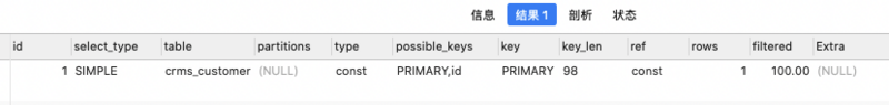 explain select * from crms_customer where id = '7cf79d7c8a3a4f94b5373b3ec392e32d';