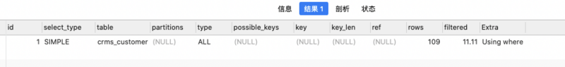 explain select * from crms_customer where customer_name = '张飞'; ----------------------------------- explain select * from crms_customer where customer_name like '张飞';