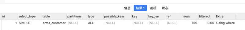 那我们来使用explain测试一下like和=下的查询情况,首先我们来测试一下为索引的字段: