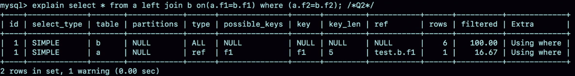 Using index,表示这个语句使用了覆盖索引,选择了索引a,不需要回表;