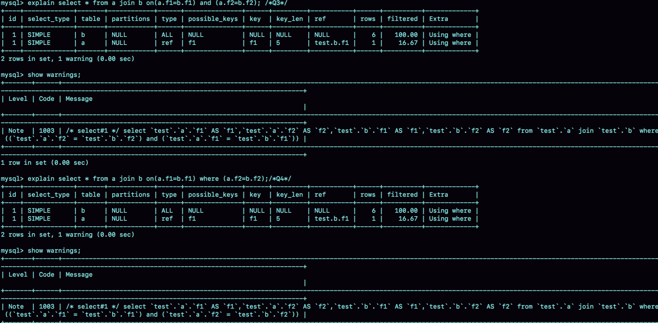 这时候,由于查询条件里面没有用到分区字段f,只能到所有的分区中去查找满足条件的所有行,然后统一做orderby的操作。这种情况下,临时表就是一种方案。