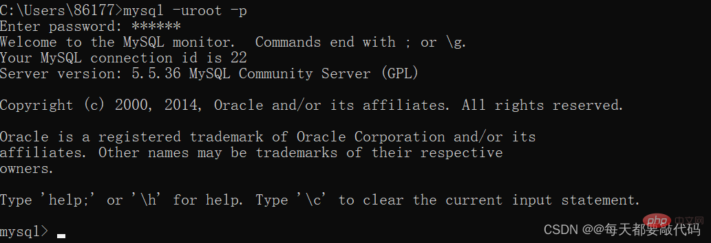5. 输入mysql回车,如果上面修改成功,将直接出现 mysql> 这样的提示符。