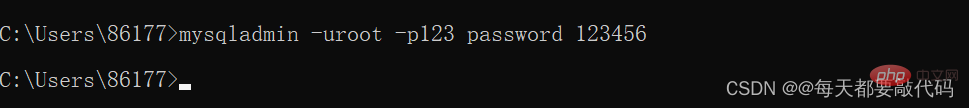 mysql***** -u用户名 -p旧密码 password 新密码,注意,password前面没有 - ,例如:我们再把密码改成123456:
