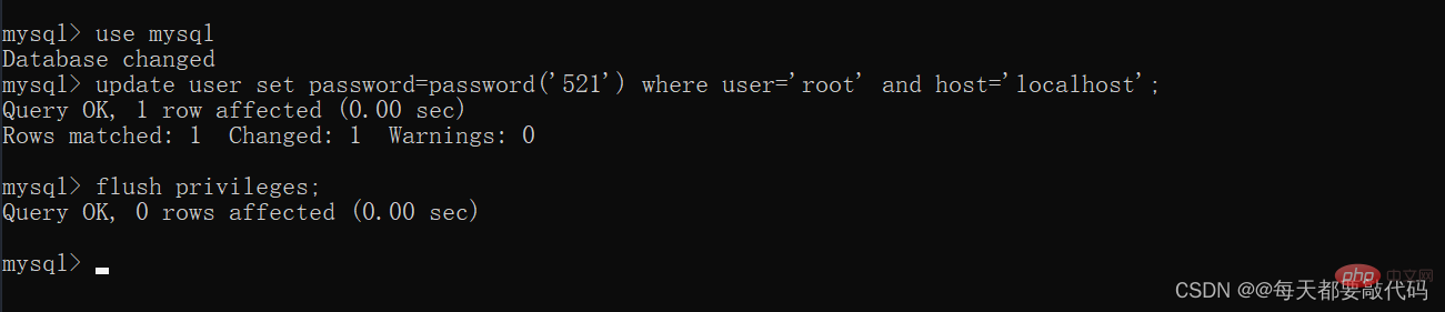 flush privileges; # 刷新权限出现以下界面说明修改成功: