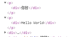 点击按钮4将在p标签内最外层嵌套一层div标签,如下: