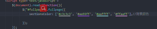在js中如下编写(首先我们就用上了sectionscolor属性 定义背景颜色,一一对应)