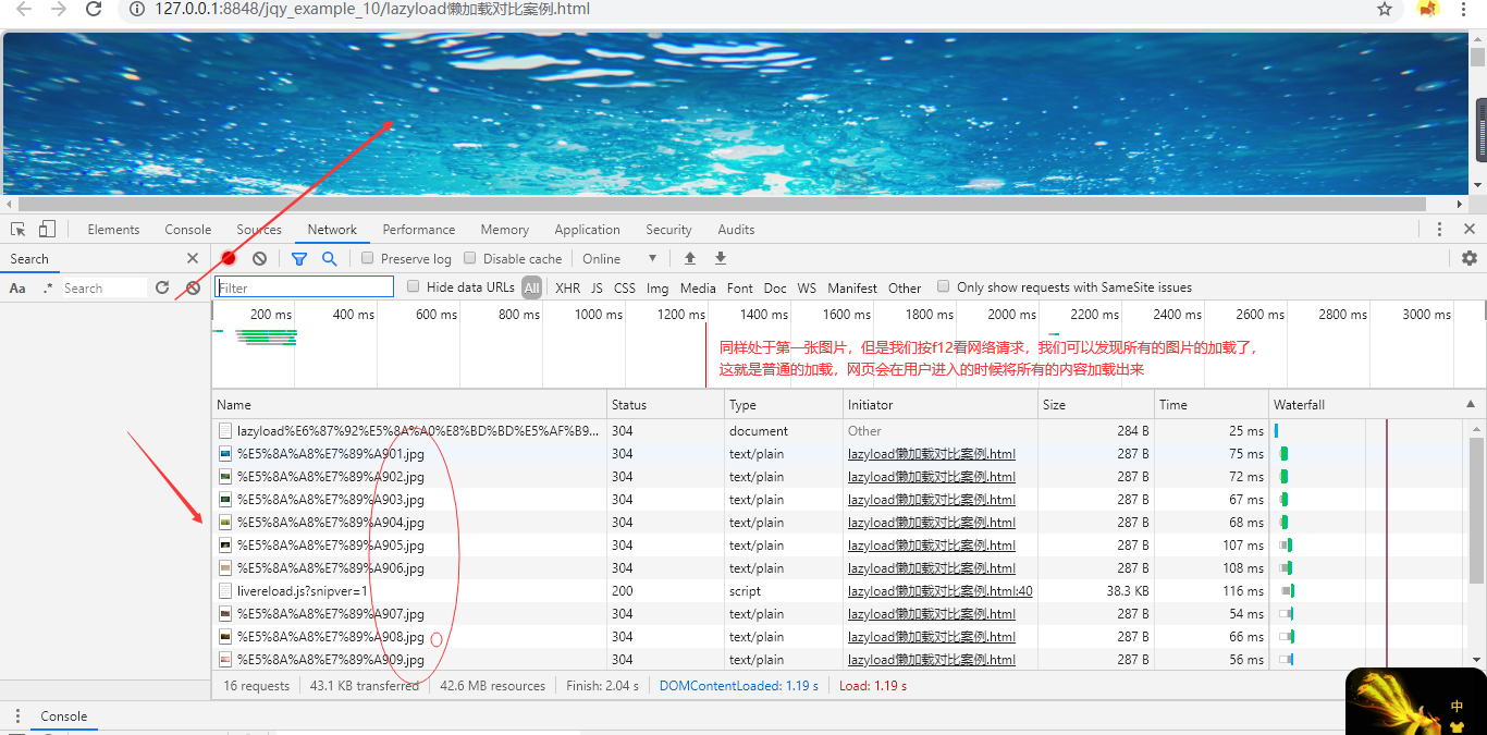 我使用了12张图片然后js就一句,就可以实现懒加载功能
