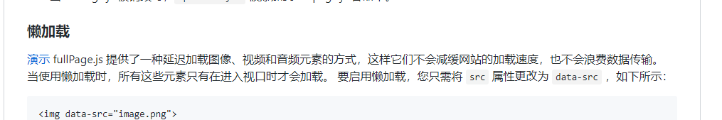 懒加载的用法简单,但它存在的意义不凡,有些框架也会内置懒加载功能 列如上面介绍的fullpage插件