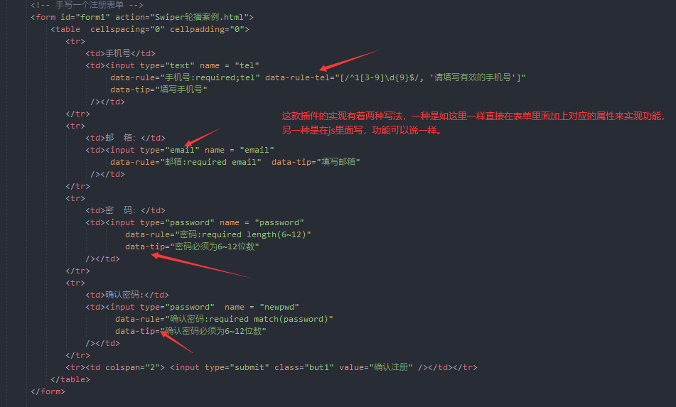 当然html的表单也是手写对于样式,id class的名称这些,这款插件与其他的不同,可以自己定义: