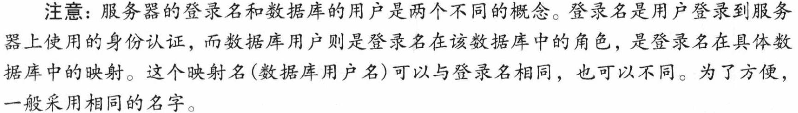 这一章主要是要分清楚几个概念,登录名、用户、角色等。
