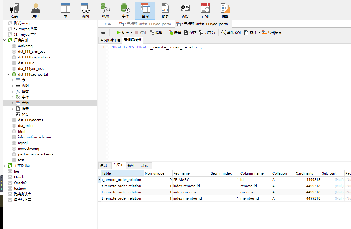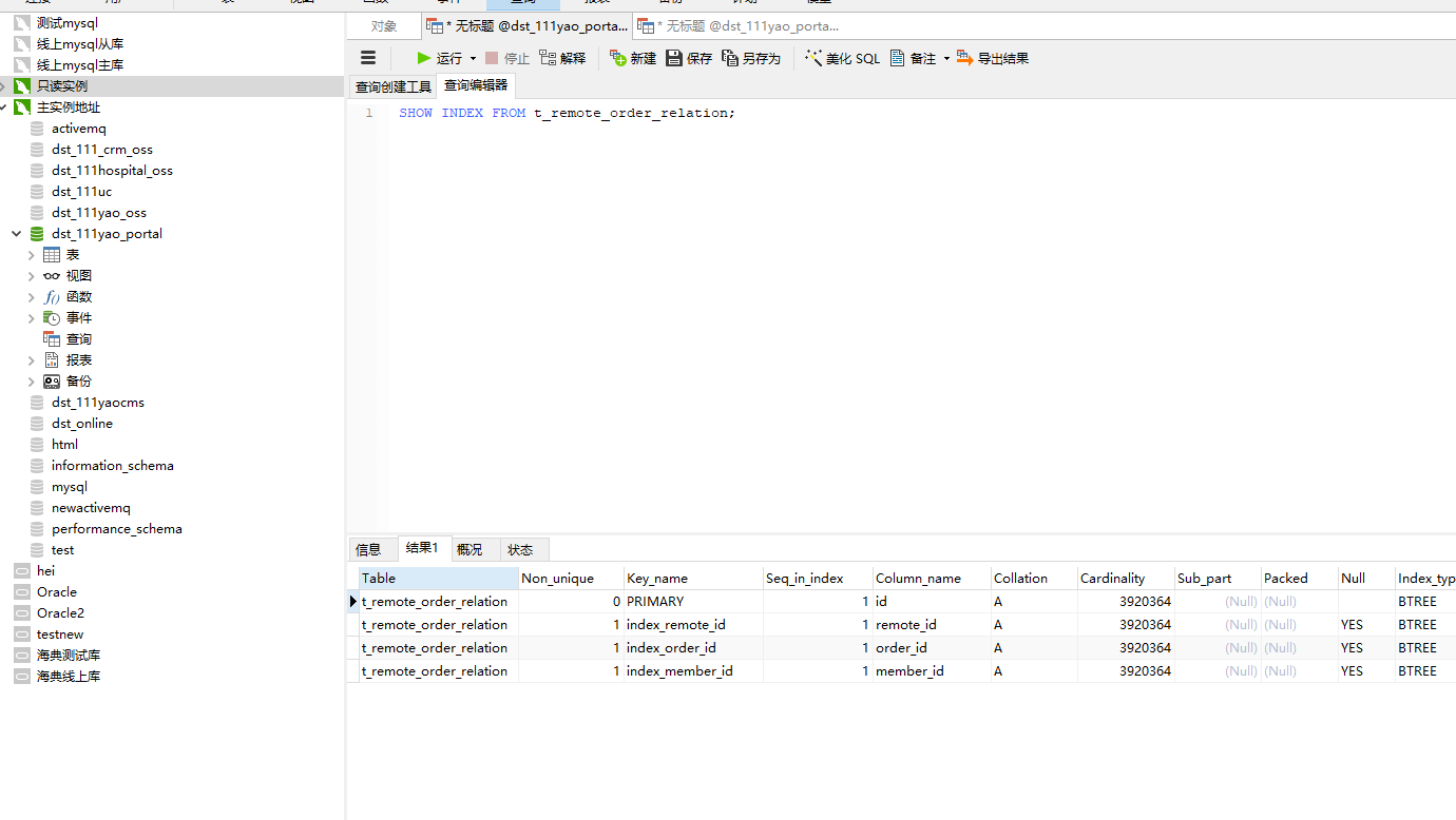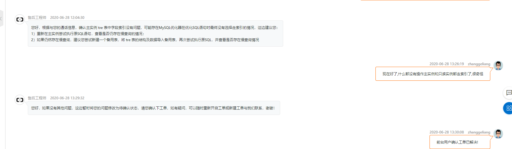 我们找到堵塞的SQL拿出来执行发现在主实例没有走索引,而在从实例走了索引.于是就给阿里提工单咨询