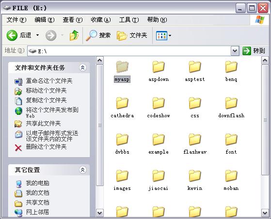 行,打开“我的电脑”,在E盘下面建立一个“myasp”文件夹,以后所有的ASP文件先暂时放到这里吧。