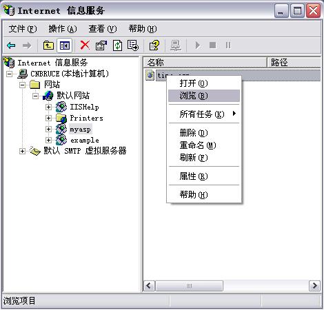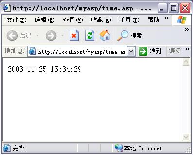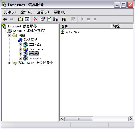 大体上就是让我刚才的myasp文件夹用一个代号来标记,比如就标记为myasp,那我调试的时候只要输入:http://localhost/myasp/time.asp 就可以调试了。