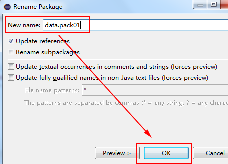 ?你鼠标单击要修改的包, 然后按键盘上的F2键, 在弹出框中输入修改的包名 , 点击OK ,然后点击continue, 这个方法修改包名后, 你这个包下面的所有的类也会跟着修改,也就是一次性全部搞定 , 很方便,