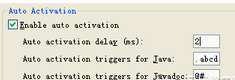 4、[auto activation triggers for javadoc]javadoc的触发器,默认是"@#".