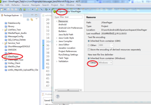 选中项目中的某一个类,选择properties--->resuources--->other,如图所示: