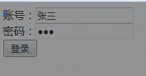 <div>账号:<input type="text" id="uid" /></div> <div>密码:<input type="password" id="pwd" /></div> <input type="button" value="登录" id="btn" />